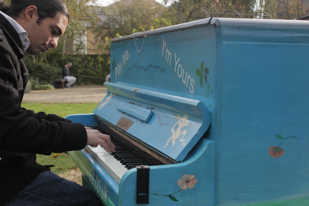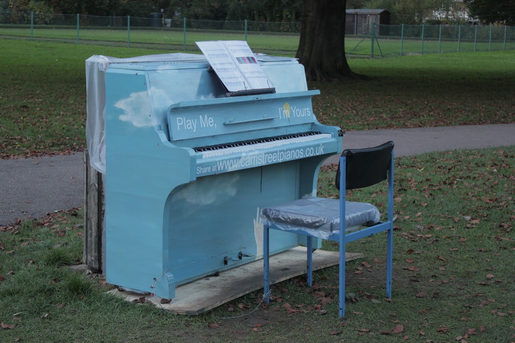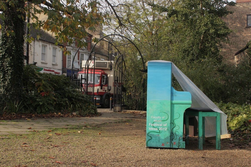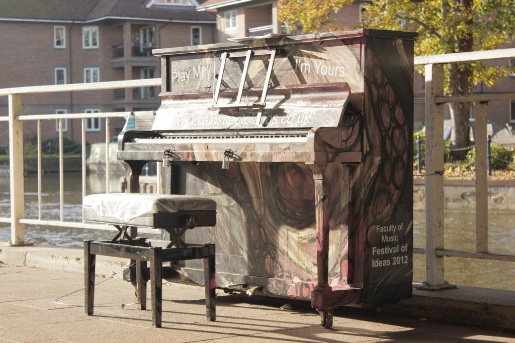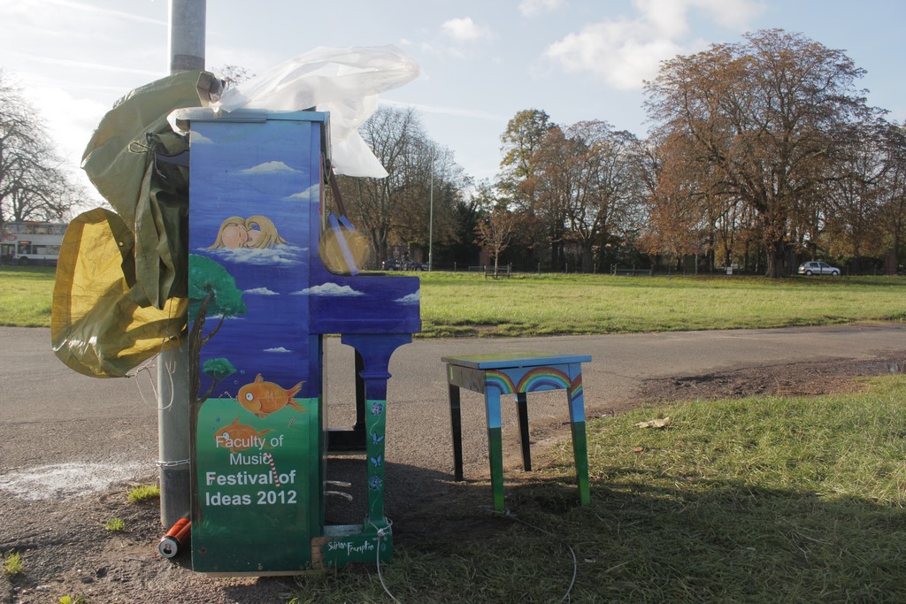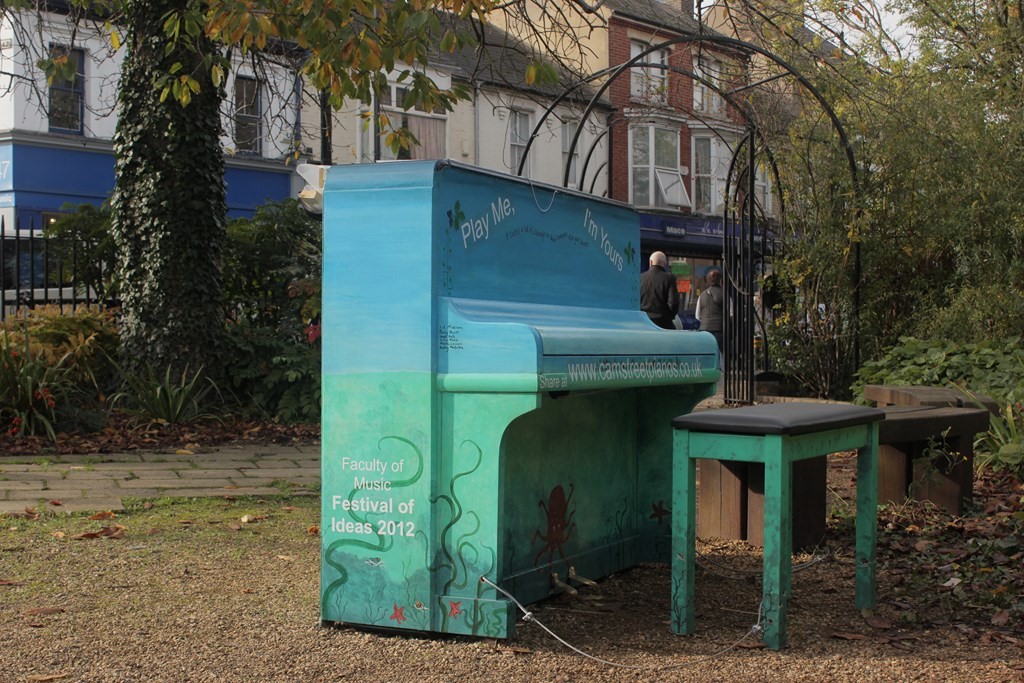 From 22nd October to the 3rd November 2012, the University of Cambridge, brought ‘Play me, I’m Yours’ to the city as part of the University of Cambridge’s Festival of Ideas . 15 pianos, designed and decorated by local artists and community groups featured in public parks, streets and green spaces across Cambridge for any member of the public to play and enjoy